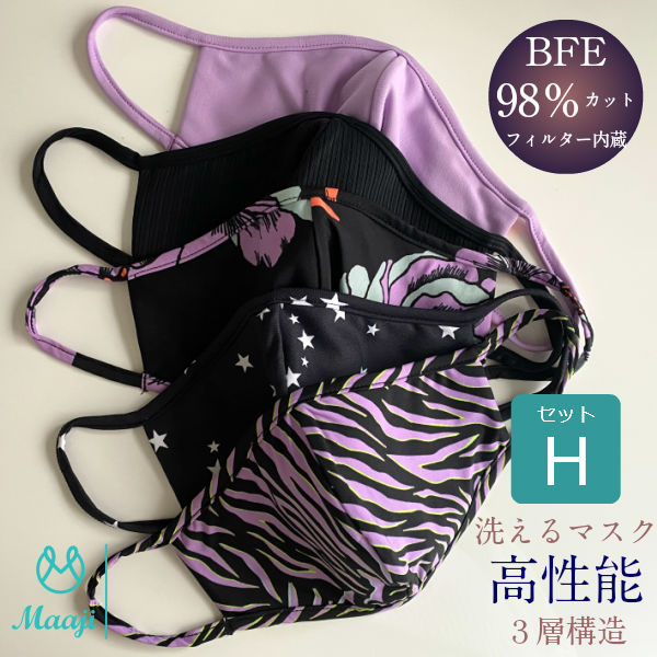 高性能水着マスク 5枚セット 5種類柄 小さめサイズ リバーシブル 高機能フィルター 3層構造 撥水 水着素材 かわいい おしゃれ 洗える 飛沫予防 花粉対策 紫外線対策 排気ガス対策 母の日 布マスク ファッションマスク デザインマスク スポーツマスク マージ Maaji【セットH】